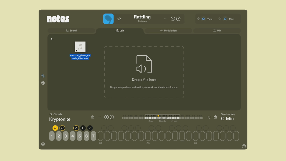Drag in any loop or sample to detect the chords — even complex jazz harmonies. Play them instantly in any key, with any sound you want.