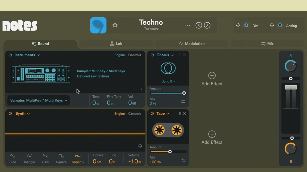 Import SoundFont (SFZ) and Decent Sampler instruments to expand Notes’ sound palette.